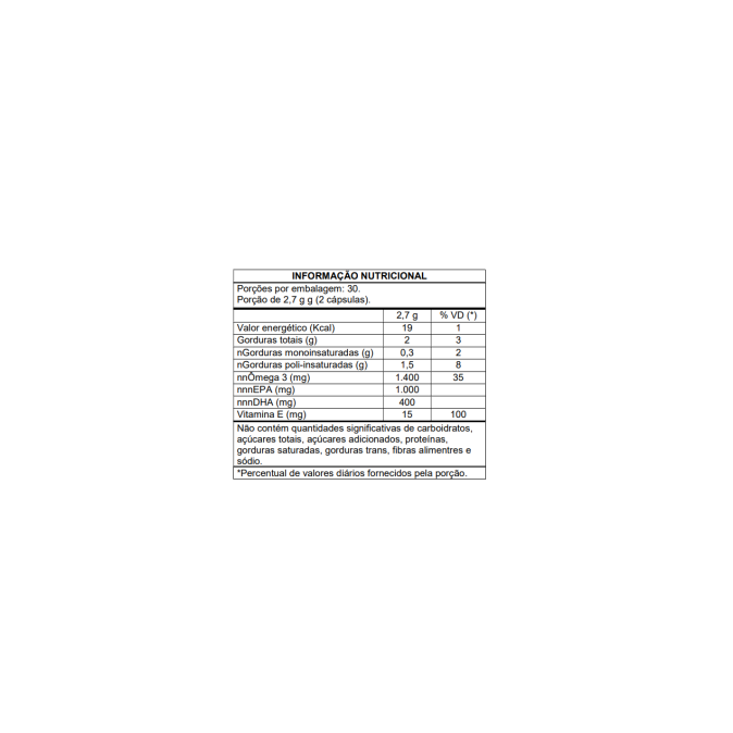 composto por óleo de peixe contendo 1.000mg de EPA e 400mg de DHA e vitamina E